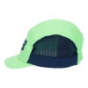 メインパネルは軽量100%ポリエステルウーブンにサイドは大きめのメッシュで夏のスポーツシーンでアクティブにかぶれるキャップです。