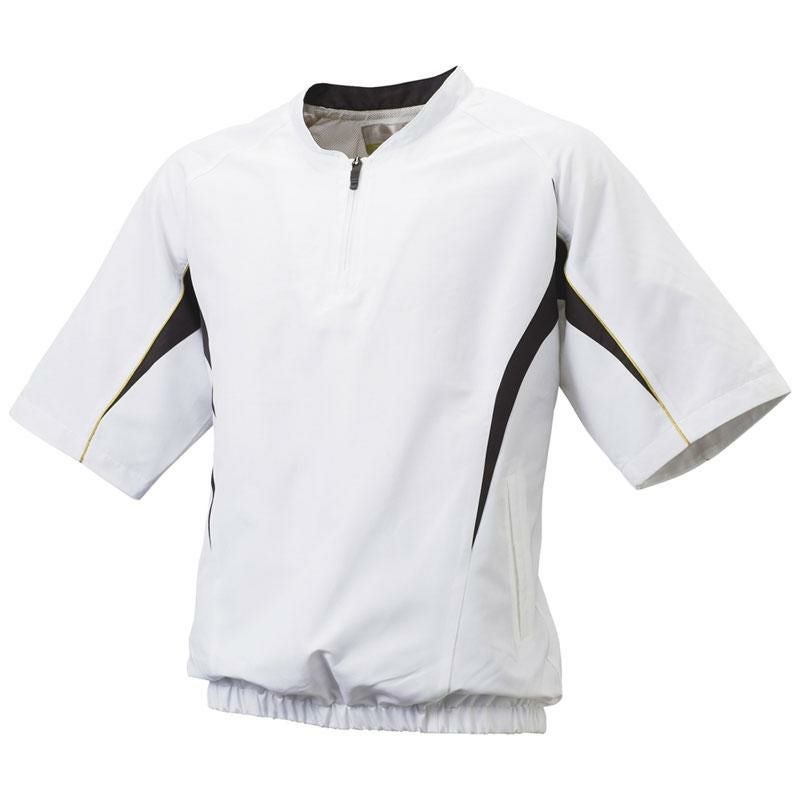 裏地メッシュ仕様のハーフZIP半袖ジャケット。