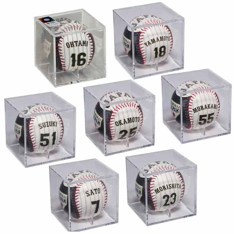 侍ジャパンのロゴ、選手のネームと背番号が入った記念ボールです。