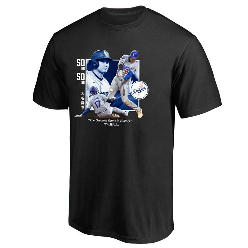 他の画像を見る 大谷翔平 Tシャツ ドジャース 大谷翔平 50-50 Greatest Game Tシャツ ブラック 野球 ウェア 達成記念 MLB ホームラン 24AW(ML01-24FW-0012) メーカー希望小売価格 ¥ 6,000 のところ 価格 ¥ 6,000 税込 メール便対応可(290円) 5,000円以上ご購入で送料無料! カートに入れる お気に入りに登録する