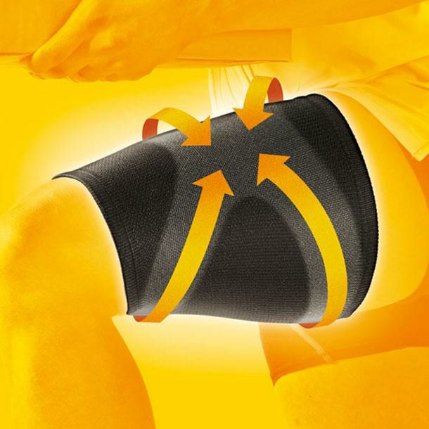 サポート箇所:もも●日常・レジャーでの動きをちゃんとアシスト●【3段階圧力設計】スポーツテーピング理論に基づき、もも前面部の圧迫で、脚を曲げる・伸ばす・歩く等の動きをちゃんとアシストします。