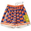 カラフルなチェッカーフラッグ柄がポップなスポンジ・ボブデザインの総柄布帛プリントショーツ。