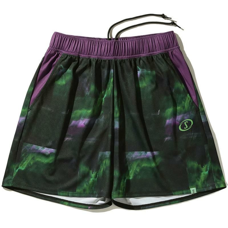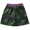 ダークトーンのネオンカラーのマーブル柄の総柄ショーツ。