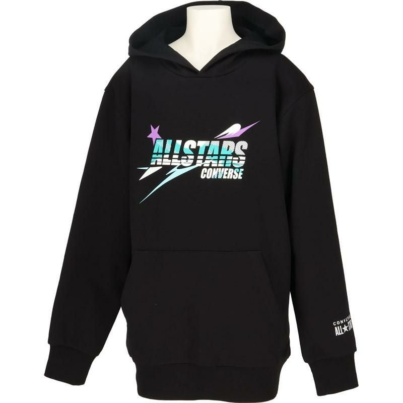 コンバース ALLSTAR を躍動感のあるロゴで表現したミニバス向けスウェットパーカ。