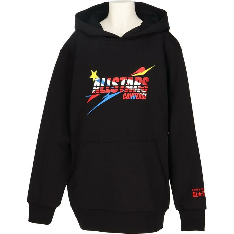 コンバース ALLSTAR を躍動感のあるロゴで表現したミニバス向けスウェットパーカ。