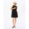 露出を控えた高めのネックラインで、裾に向かってふんわり広がるAラインシルエットがボディラインをさりげなくカバーします。