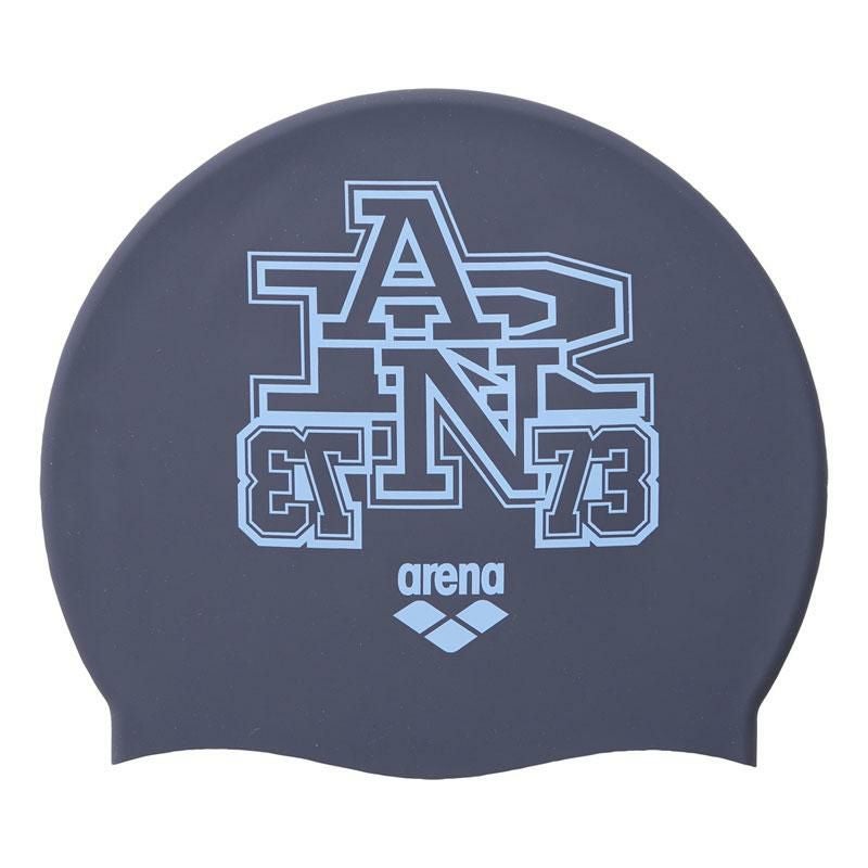 arenaのARNとブランドデビューした1973年の73をカレッジ風にアレンジしたデザインのシリコーンキャップ。