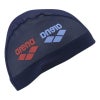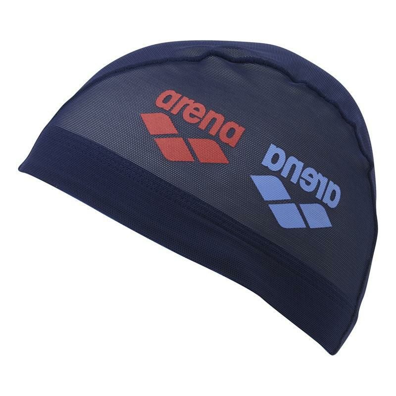 arenaロゴのarenaを反転し、あえて違和感のあるデザインに仕上げたメッシュ素材のスイムキャップ。