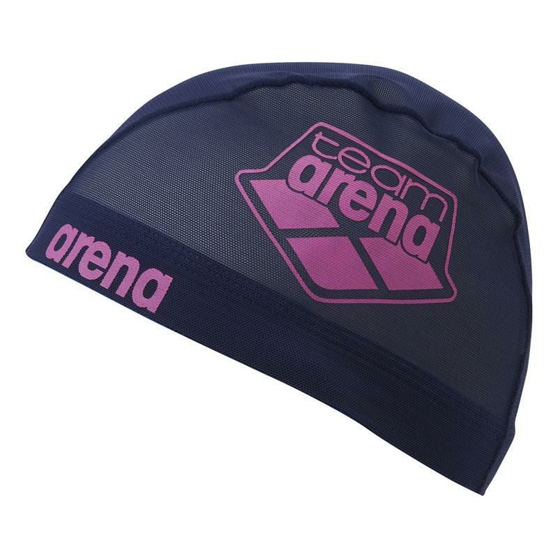 team arenaデザインのメッシュ素材のスイムキャップ。