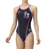 前当て部分に黒の裏地付きワンピースタイプ水着。