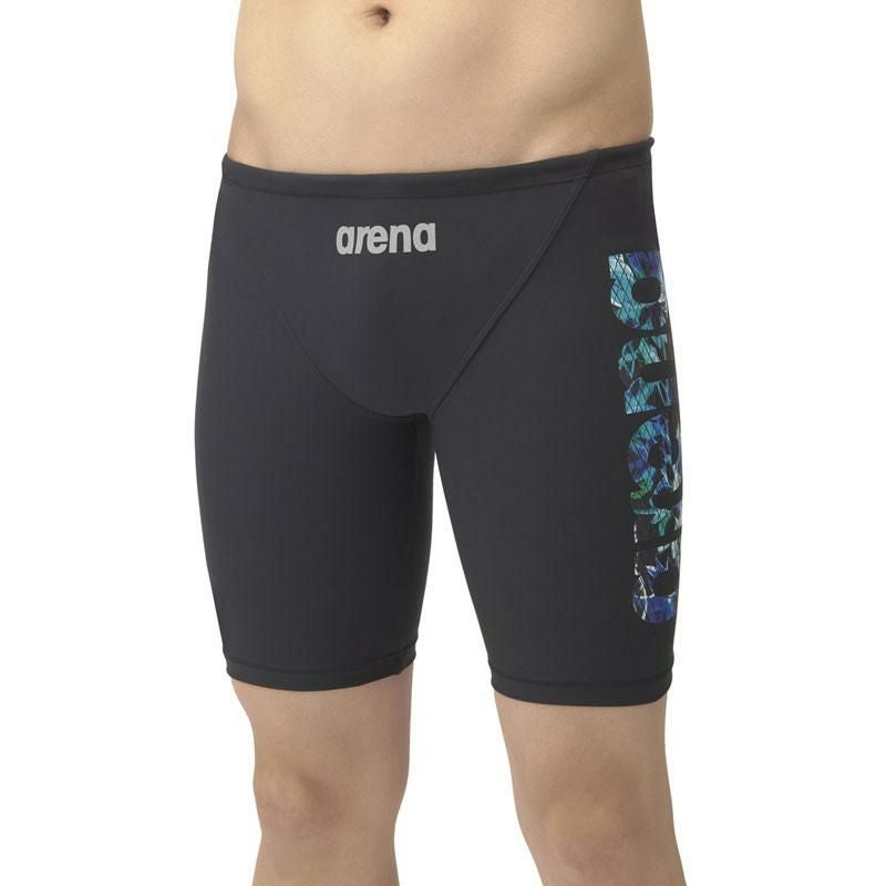 シーズンテーマのWATER ILLUSION、NEO EARTHのデジタルプリントを大胆に左腿へ施したハーフレッグタイプ水着。