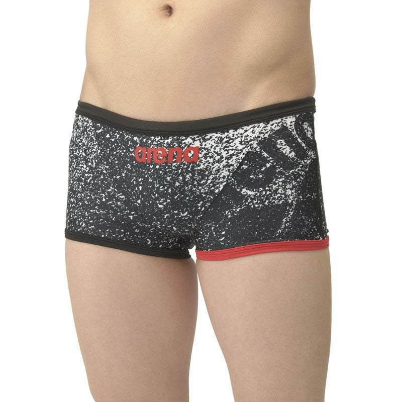 アリーナパネルロゴデザインのショートレッグタイプ水着。