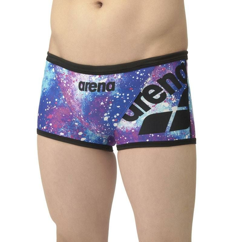 アリーナパネルロゴデザインのショートレッグタイプ水着。