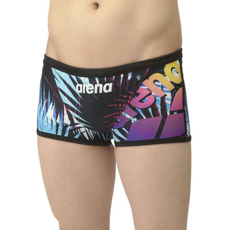 アリーナパネルロゴデザインのショートレッグタイプ水着。