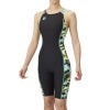 トロピカルなデザインが印象的な脇切替ハーフスパッツタイプ水着。