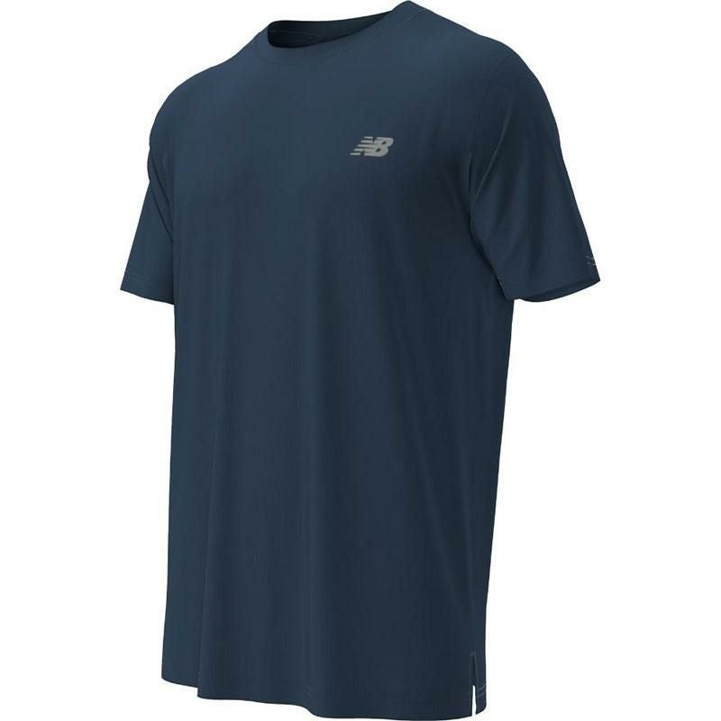 軽量で優れた吸汗速乾性と通気性を発揮するNB DRY X搭載のボーダーメッシュを使用したランショートスリーブTシャツ。