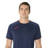 ●右胸のマークは刺繍、背面に大きめのアシックスロゴをラメプリントで表現した半袖シャツ