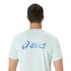 ●右胸のマークは刺繍、背面に大きめのアシックスロゴをラメプリントで表現した半袖シャツ