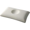 枕中央ニ開イタフリーホールガ後頭部ヤ側頭部ノ負担ヲ軽減シ、マタ周囲ノ立体形状ガ頸部ヲ持チ上ゲテ、理想的ナ寝姿勢ヘト導キマス。