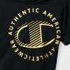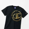 左胸にはサークル状に組んだ「AUTHENTIC AMERICAN ATHLETICWEAR(オーセンティック アメリカン アスレチックウェア)」の文字の中にCロゴをレイアウトしたグラフィックを光沢感のあるメタリックプリントで入れています。