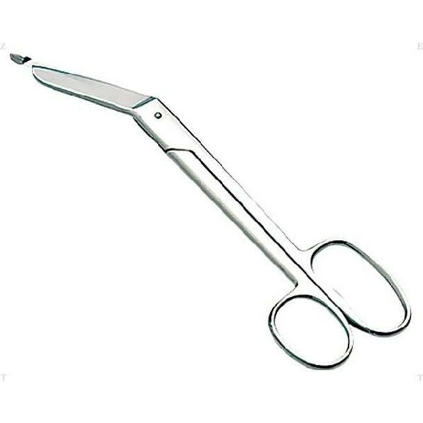 先端が丸く、刃がドッグレッグした形状で皮膚を傷つけずに巻いたテープを切ることが可能 。
