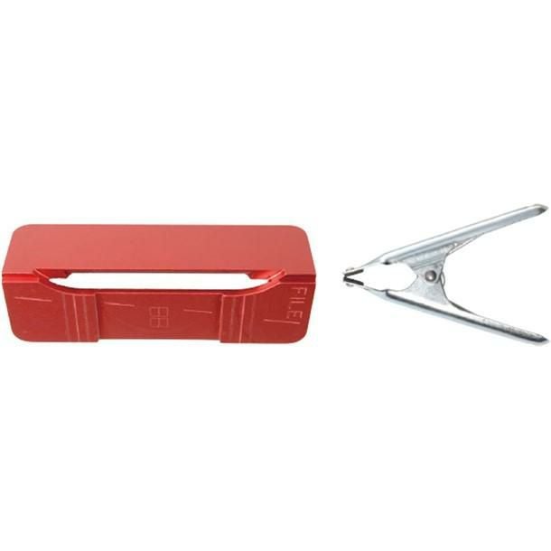最終仕上用の細目ファイルをピンサーとプレートの間に挟んで使用します。