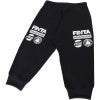 モノクロのロゴデザインが施されたレイアウトが特徴で、スリムフィットのシルエットとポケットが装備されています。
