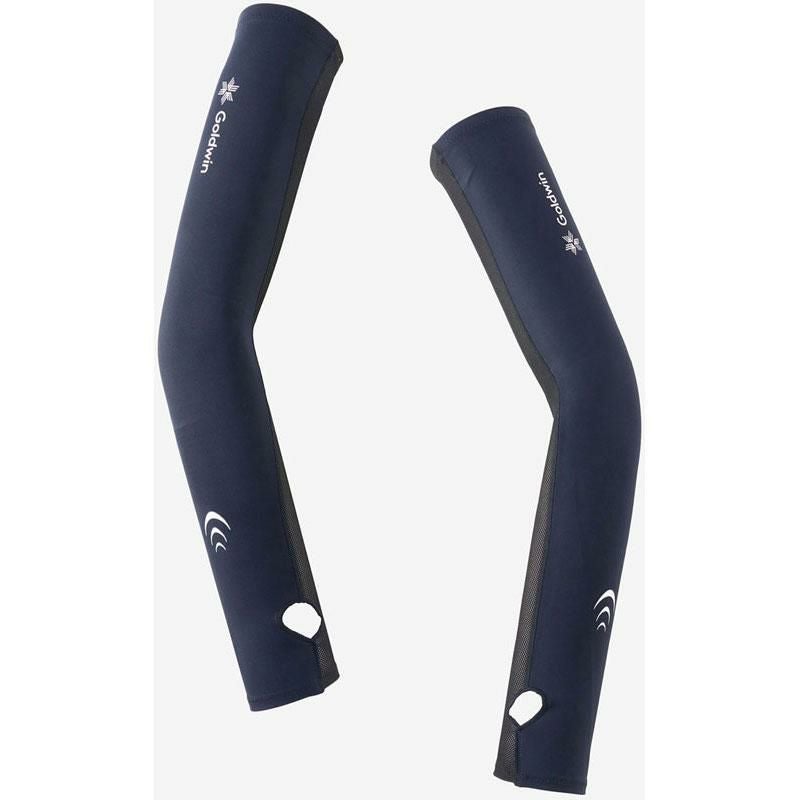 メッシュ素材との切り替えで通気性を高めた、着圧設計のアームカバー。