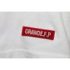 グランデ.エフ.ピー.定番.ヘビーウエイトタイプのコットン素材を使用し、左胸にサッカーボールをイメージした六角形のシリコン素材のワッペンを施し、背中に、ニューGRANDE.F.Pメッセージ入りのフェイクスウェードワッペンを、右袖には、GRANDE.FP.刺繍ワッペンを、さりげなく施した、アパレルラインのニュー定番Tシャツ。
