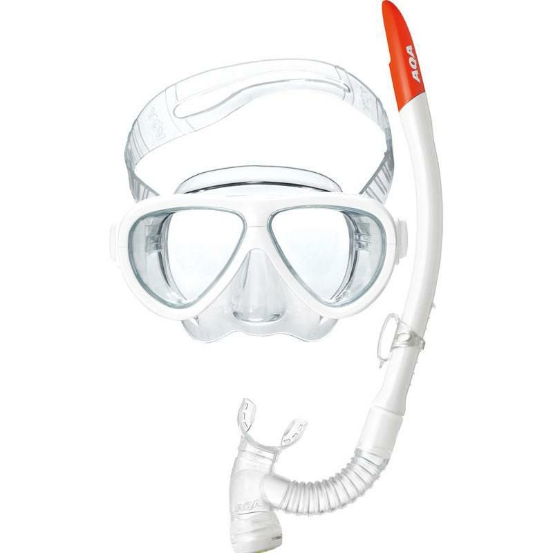 【9才以上の子供向け】2眼マスク&水の浸入を自動的に防ぐドライアッパー付きスノーケルのセット。