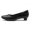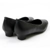 スクエアトゥ、4E相当ウイズ、約3cmヒールのシンプルな黒パンプス。